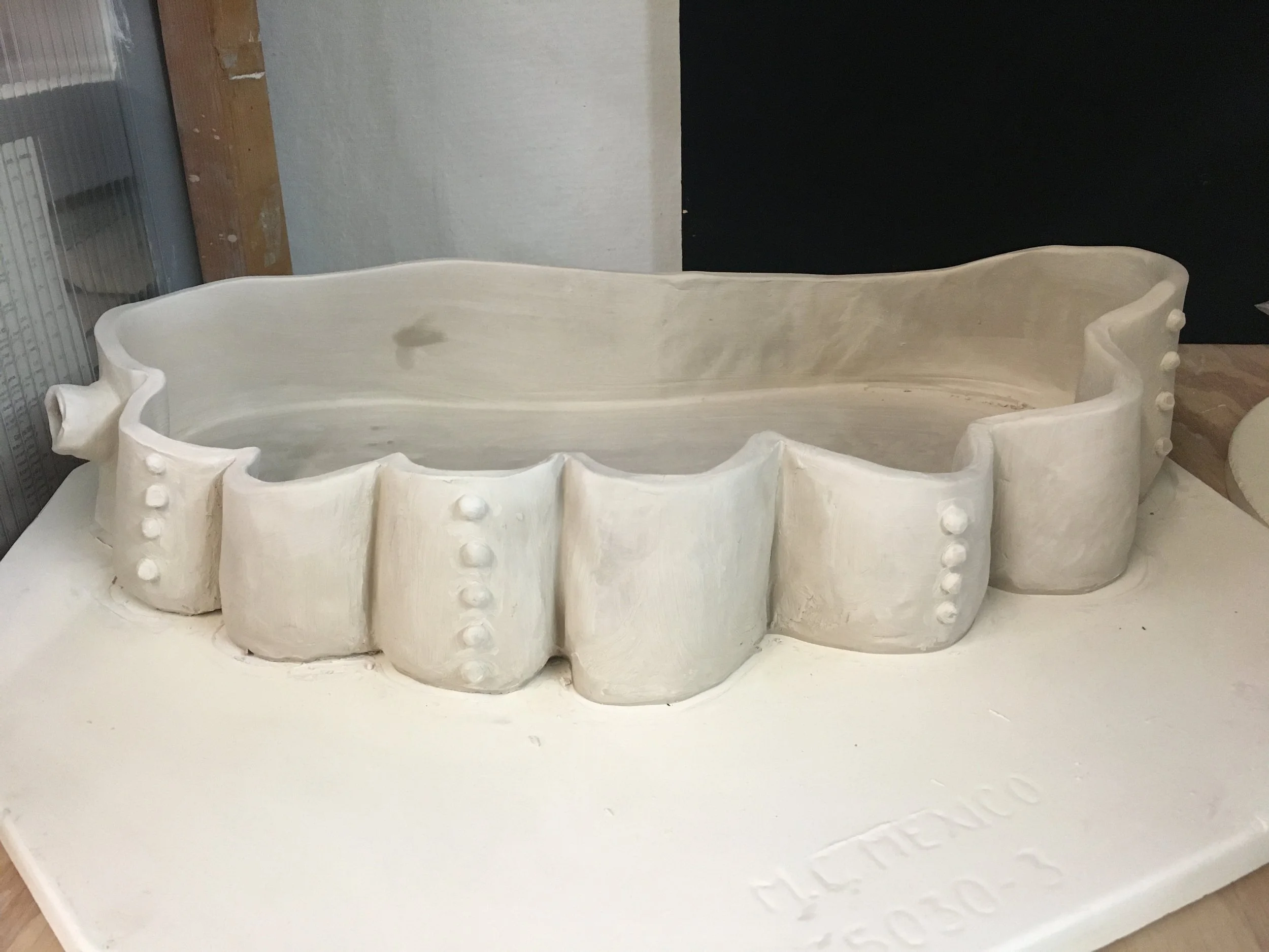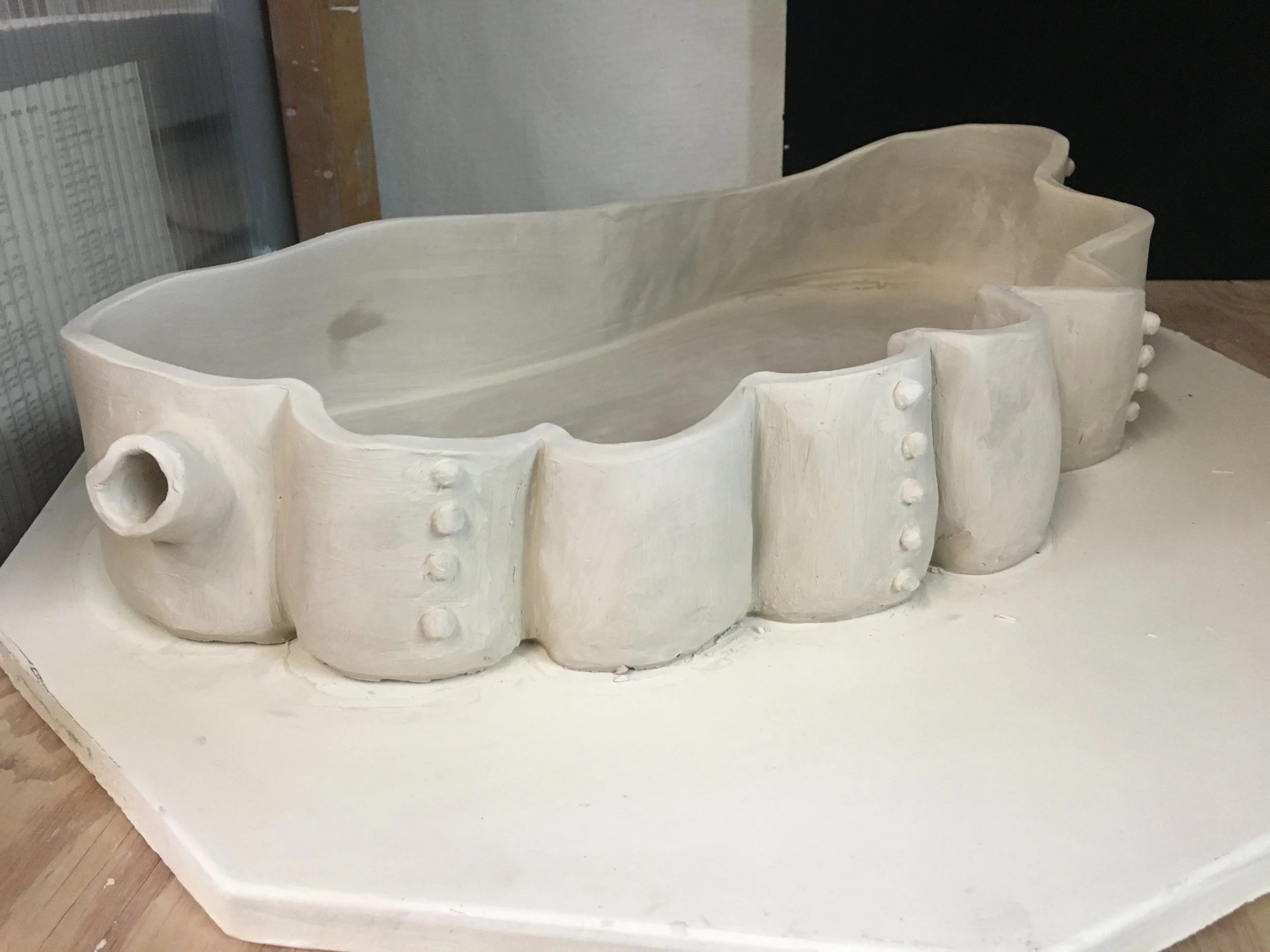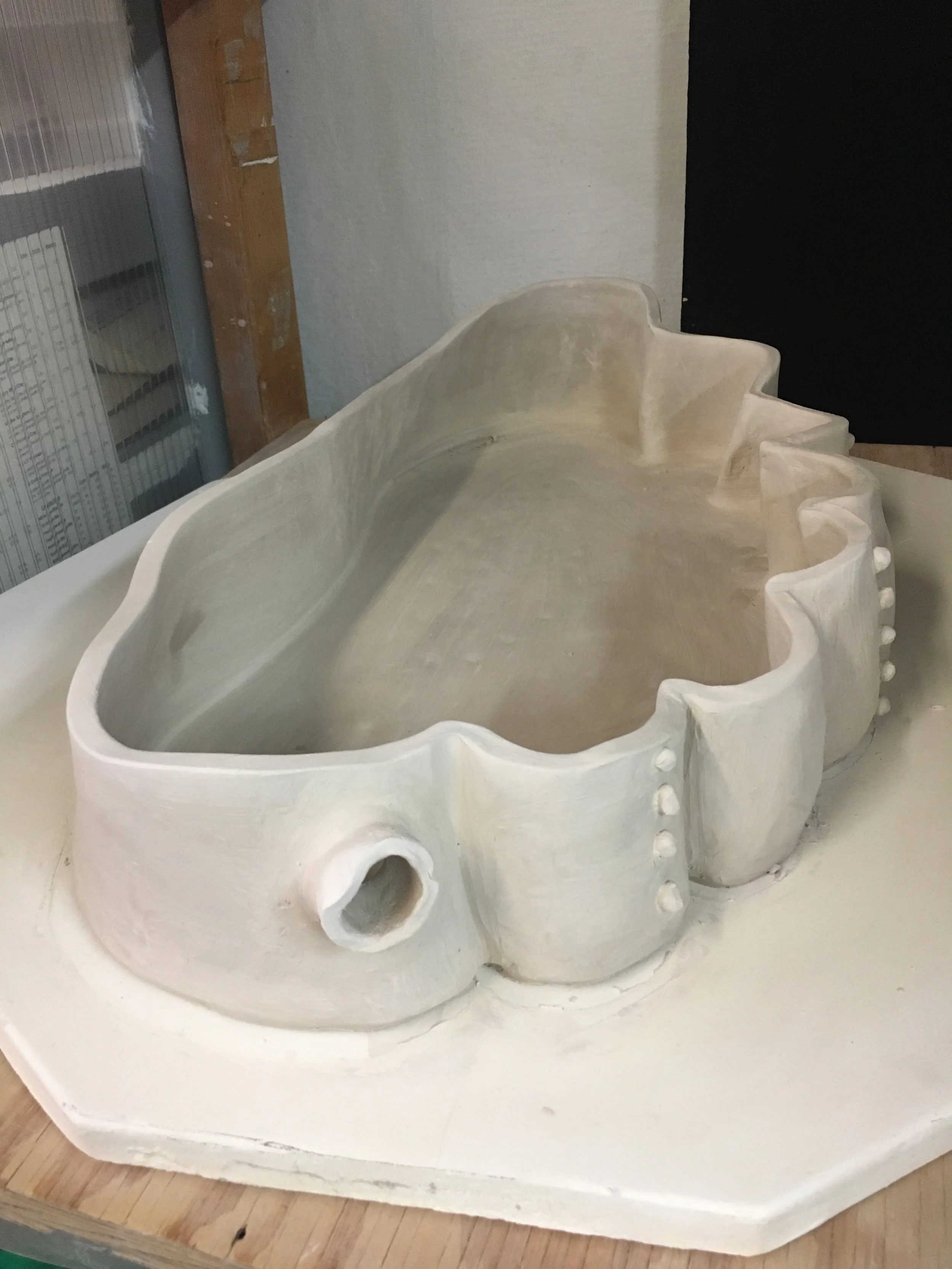 This is the first stage of a new sculpture I’m working on that is inspired by the Voynich Manuscript’s “pools”. It is made of hand-sculpted porcelain and it’s designed similarly to another “pool” sculpture I made before: