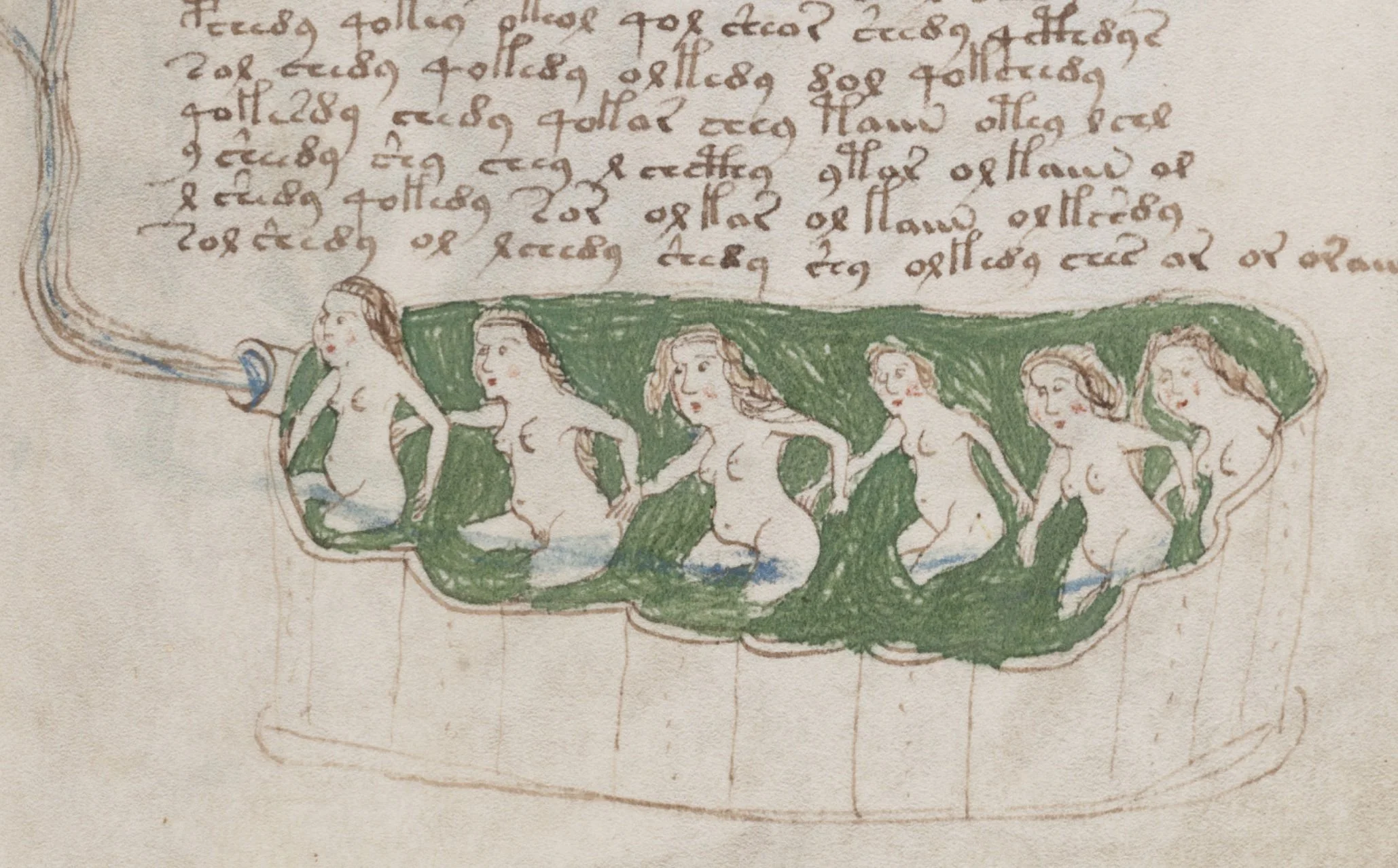 When making this first “prototype pool” sculpture, I had not yet figured out a reliable technique for sculpting these figures in porcelain, so I experimented with making the figure out of polymer clay. Since then I developed a new improved technique over the past year, to make these miniature figures using porcelain. I now prefer to use porcelain rather than polymer clay—the finished figure is more durable and it matches better with the rest of the sculpture, the pool structure, that is also made of porcelain. (Though for part of the figure-sculpting process I made re-usable molds for their faces out of polymer clay, the end result is entirely porcelain.) These are a number of the other ones I’ve made using the new technique, which I feel comes closer to capturing the Voynich Manuscript’s idiosyncratic style: