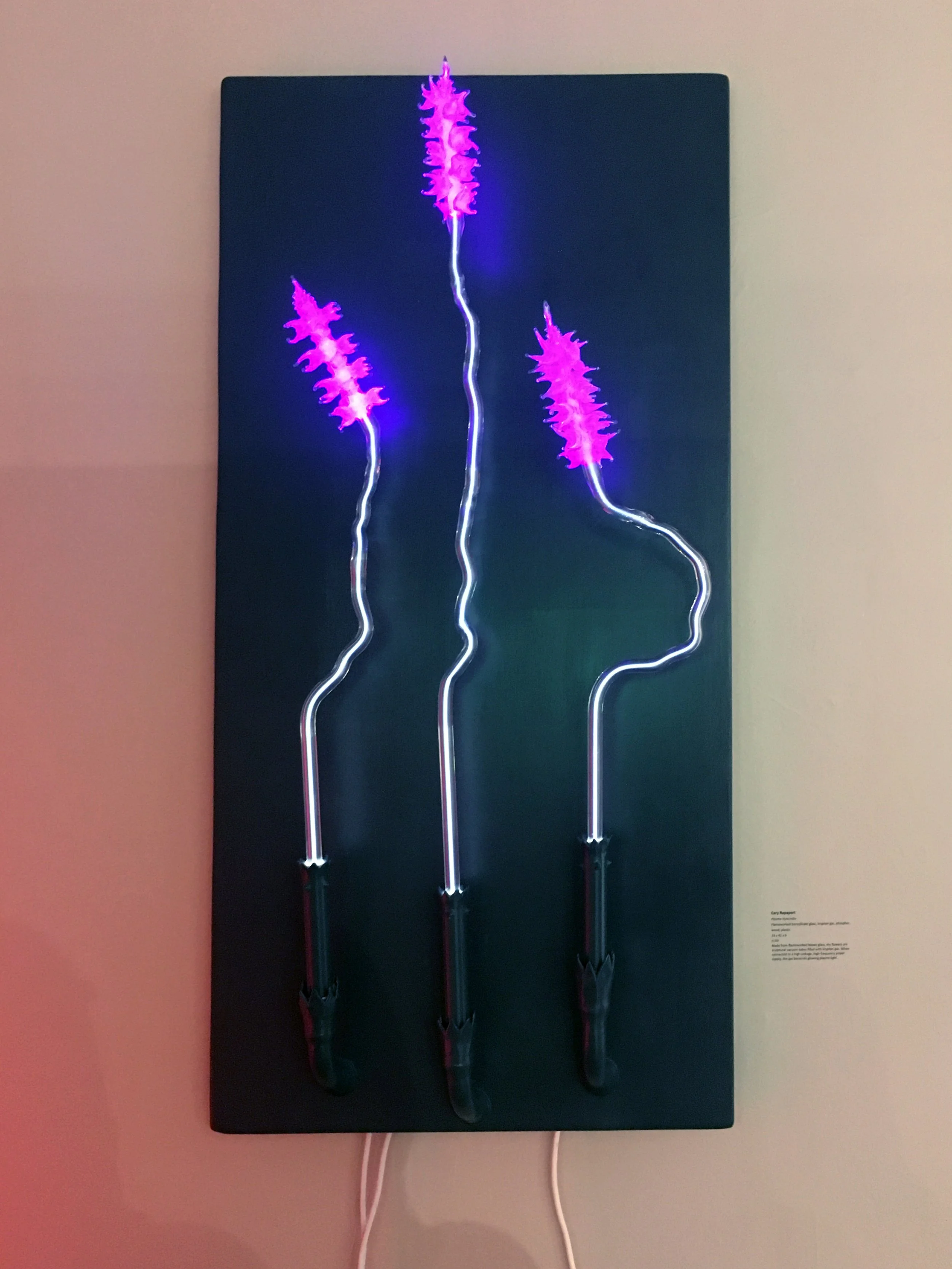 “Purple Hyacinths” Flameworked borosilicate glass, krypton gas, electronic power supply (2021)